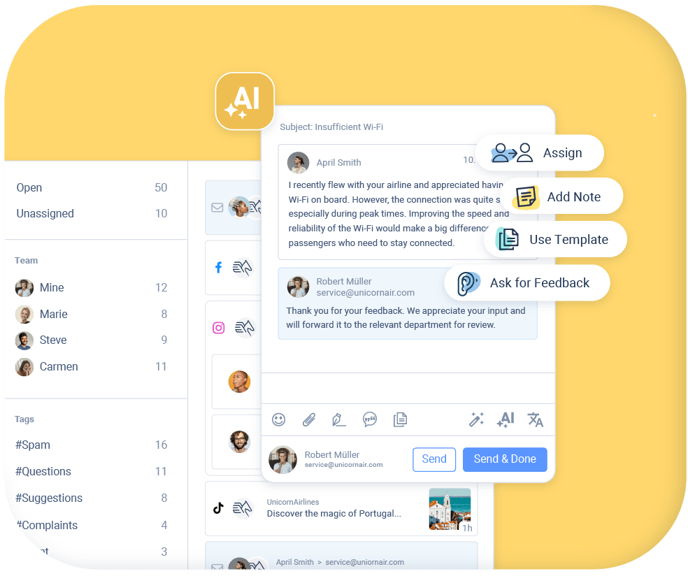 Assign and delegate tasks effortlessly, create tags to organize conversations, and always keep track of what’s done and what still needs attention. With everything in clear view, transparency and teamwork have never been easier!