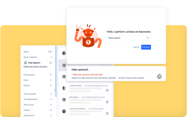 The Hate Speech Detector keeps you and your community safe. It detects toxic comments automatically and handles them the way you want: by hiding, deleting, delegating, or flagging them for your attention.