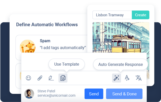Vereinfache die Content-Erstellung mit KI-generierten Bildern und Captions. Nutze KI im Community Management und erstelle oder verbessere Antworten auf Kommentare und Mentions. Automatisiere Prozesse, steigere deine Effizienz und optimiere deinen Workflow.