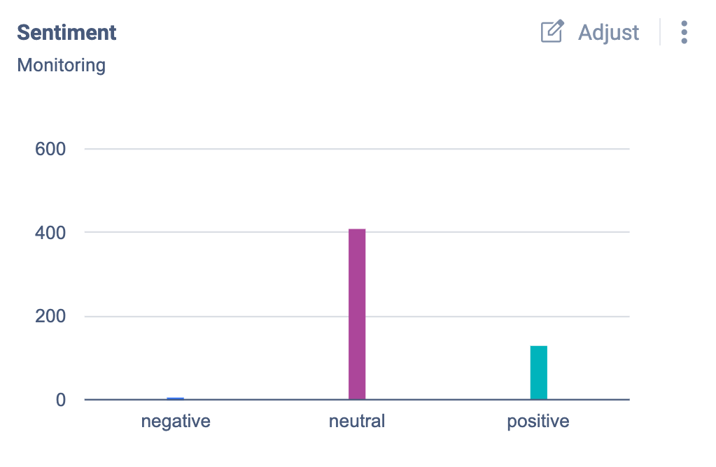 Die Sentiment-Analyse kann bei einer hohen Anzahl von Erwähnungen deines Unternehmens sehr hilfreich sein, da sie dir ein umfassendes Bild davon vermitteln kann, wie Menschen über deine Marke sprechen.Obwohl du dich nicht ausschließlich auf die Sentiment-Analyse verlassen solltest, um zu bestimmen, wie die Menschen über dein Unternehmen oder deine Marke denken, kann sie doch ein hilfreicher Ansatz sein, um einen Überblick über die Gesamtmeinung zu deiner Marke oder deinem Unternehmen zu erhalten. Wie du unten im Beispiel-Screenshot sehen kannst, kann eine Sentiment-Analyse, dargestellt in einem einfachen Diagramm, dir sofort einen Eindruck davon vermitteln, wie die Menschen über deine Marke oder dein Unternehmen sprechen.