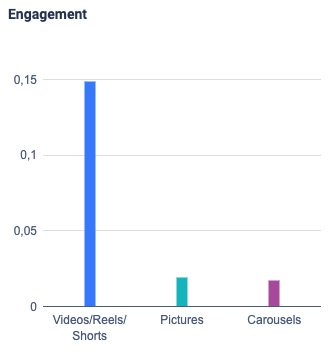 Estos gráficos muestran qué formatos de contenido priorizan tus competidores y cuáles son los que realmente generan mayor interacción. Al combinar el volumen de publicaciones y los datos de rendimiento, puedes identificar claramente qué es lo que mejor funciona y ajustar tu propia estrategia de contenido basándote en resultados probados de la competencia, en lugar de en suposiciones.
