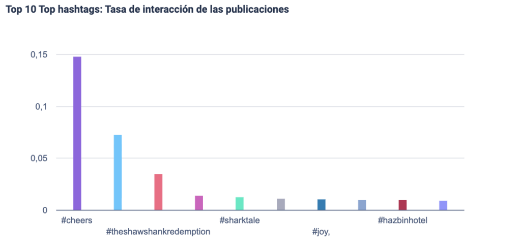 Otro paso útil es identificar qué hashtags debes utilizar. Un análisis de la competencia en las redes sociales te ayuda a determinar qué hashtags vale la pena tener en cuenta, mostrándote cuáles utilizan con más frecuencia tus competidores y cuáles funcionan mejor en términos de tasa de interacción con las publicaciones. Esto se puede hacer mediante una investigación de hashtags basada en datos o analizando los 10 hashtags más utilizados por tus competidores.