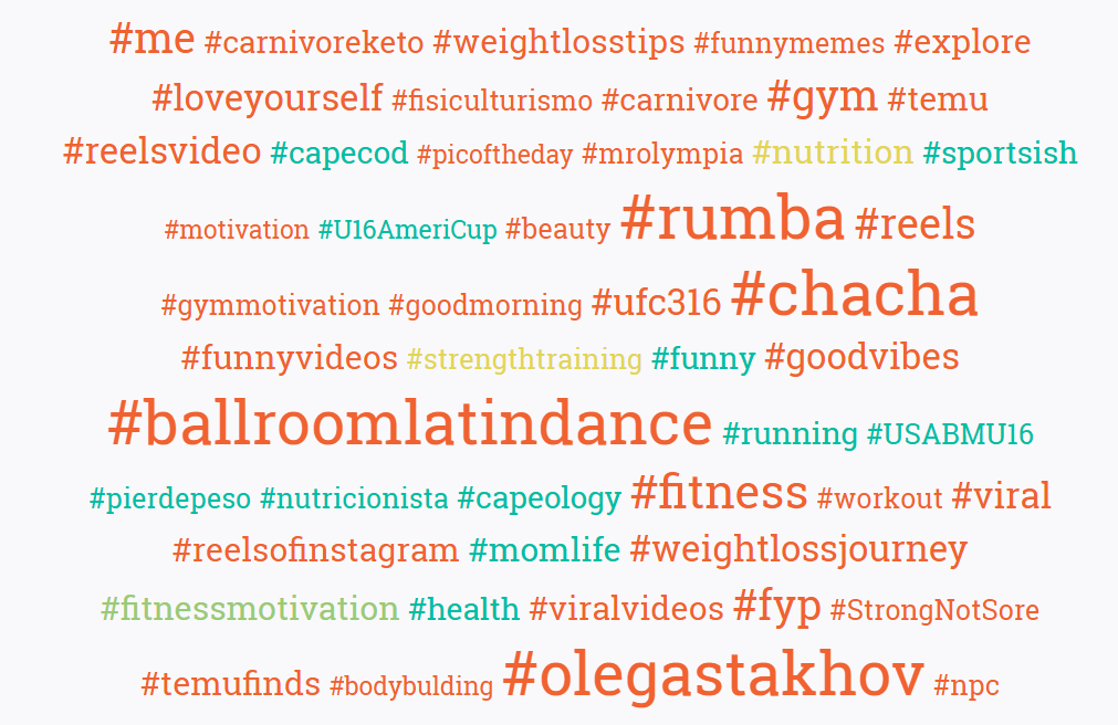 Tras realizar el análisis, vemos que los mejores hashtags para Instagram relacionados con el mundo del fitness en general serían: