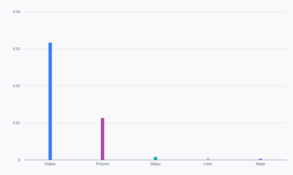A no-brainer way to improve your Facebook post engagement rate,is by posting in content formats that correlate with higher engagement rates. Of course, this doesn’t mean that you shouldn’t pay attention to creating high-quality content that interests your audience, but understanding what content format generally generates higher engagement rates can be a real game changer. As you can see in the screenshot below, a social media tool can be used to analyze your profile as well as other similar profiles in your field to show you what content format you should consider posting.