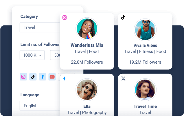 Easily search for influencers by setting your criteria to find the best collaboration partners. Analyze their profiles in detail to discover the perfect match for your needs.