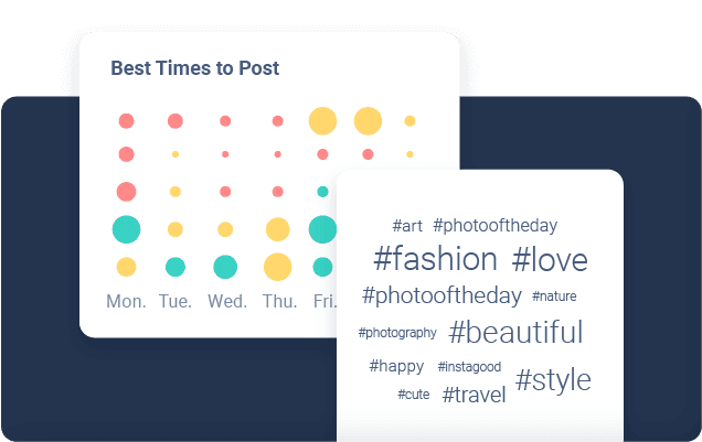 Discover what content works best, improve your reach, and boost engagement. Gain valuable insights on top-performing posts, the right hashtags, optimal posting times, and more.